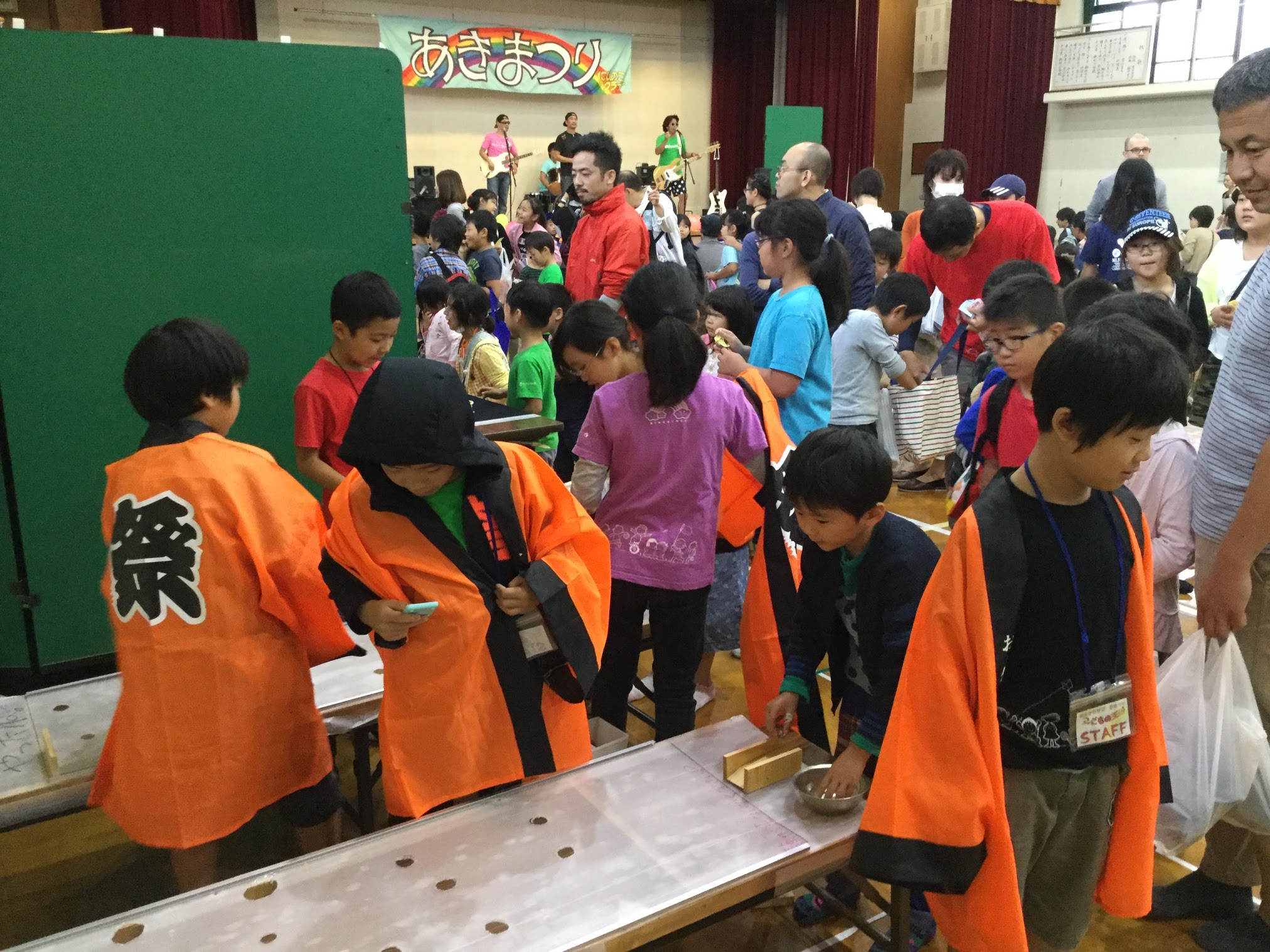 / 最終更新日時 : nijinoko にじのこ通信 秋祭り2017!! 今年の秋祭りは雨! 新町小学校体育館での開催となりました。 オープニングは子供達の元気な歌声です。 足元が悪いにもかかわらず、大変多くの地域の皆さまにお越し頂き、大盛況となりました。 手作りの店も大盛況!! ゲームコーナー はっぴを着て頑張りました。 初めての屋内での開催となりましたが、 例年と変わらず、楽しい秋の一日となりました。(学習・広報) Follow me! FacebookXHatenaPocketCopy “秋祭り2017!!” に対して1件のコメントがあります。 mboo より: 雨と決まってからの実行委員長をはじめとする方々のワクワクした動きがとても素敵でした。雨でもたくさんの方々がきてくださり、地域に定着したまつりとなっていることが実感できました。今年この雨パターンを経験した限りはもう怖いものなし。あ、突然の選挙は怖いなあ。 コメントを残すメールアドレスが公開されることはありません。 ※ が付いている欄は必須項目ですコメント ※ 名前 メール サイト Δemail confirm* post date* 日本語が含まれない投稿は無視されますのでご注意ください。(スパム対策)